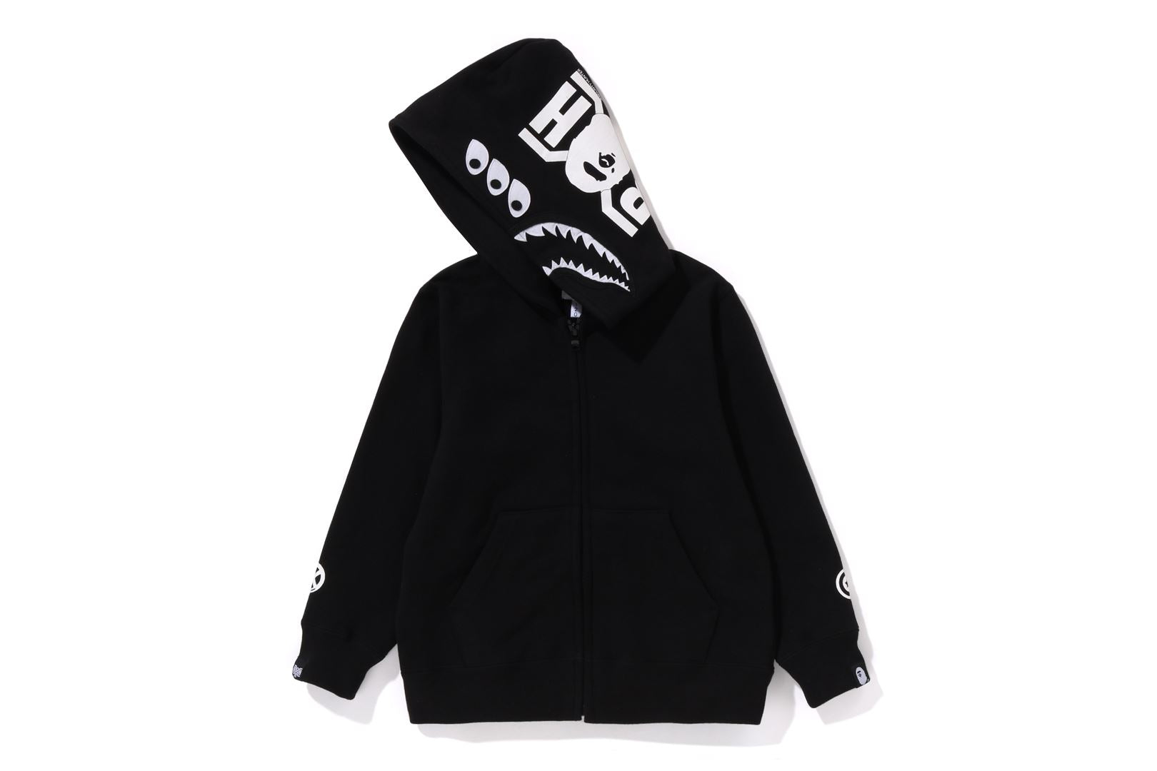 Introduce your little ones to streetwear style with the BAPE X BOUNTY HUNTER Mad Shark Full Zip Hoodie. Featuring a bold collaboration between two iconic brands, this hoodie boasts a cool shark design and a convenient full zip closure. Made with quality materials, it offers both style and comfort for your kids.