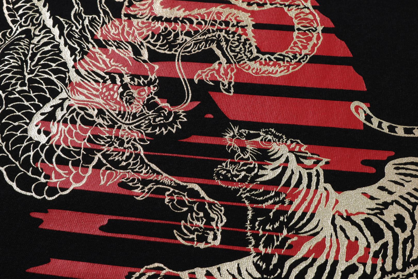 This TIGER AND DRAGON APE HEAD TEE is perfect for any stylish and fashion-forward individual. Made from high-quality materials, it features a unique and eye-catching design of a tiger and dragon ape head. Add a touch of fierceness to your wardrobe with this statement-making shirt.
