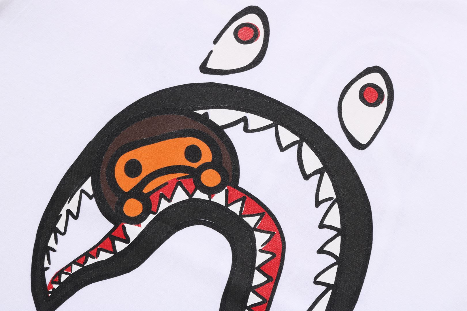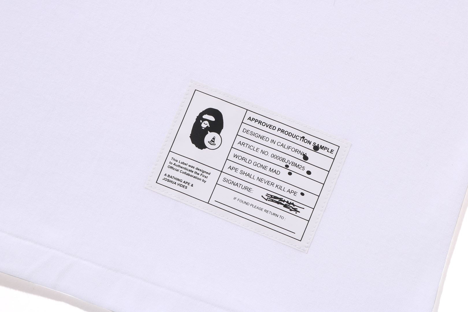Experience the unique collaboration of streetwear giants BAPE and artist Joshua Vides with the Milo Shark Tee. Featuring their signature camo print and Vides' iconic monochromatic style, this limited edition tee is a must-have for fashion-forward individuals. Stand out from the crowd and elevate your wardrobe with this exclusive piece.